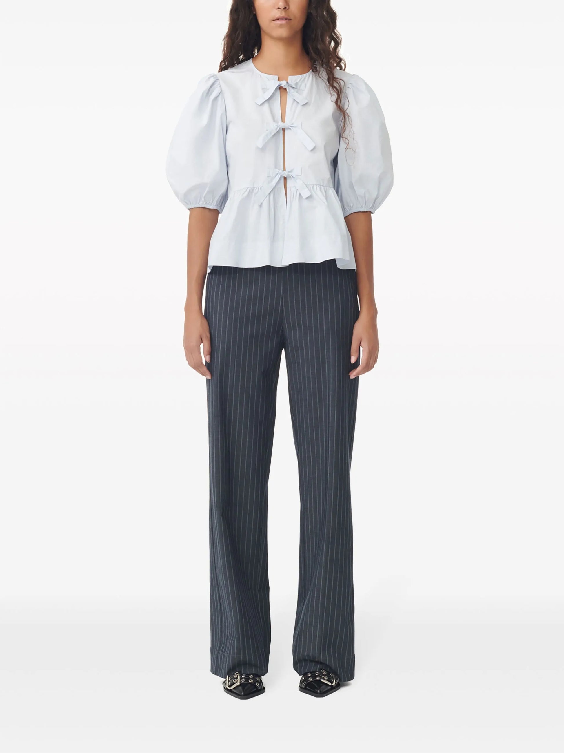 Grey Pinstripe Wide-Leg Trousers